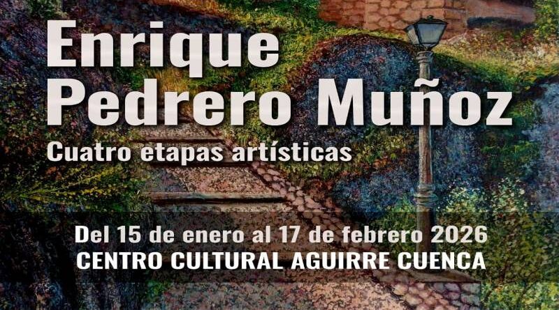 El Centro Cultural Aguirre inaugura este jueves 15 de enero una muestra retrospectiva de Enrique Pedrero Muñoz, que permanecerá abierta hasta el 17 de febrero. Integrada en el ciclo ‘Días de Arte Conquense’ —impulsado por la Concejalía de Cultura bajo la dirección de María Ángeles Martínez y la coordinación de Carlos Codes—, la exposición recorre las cuatro etapas creativas del autor. Pedrero Muñoz, doctor en Bellas Artes y miembro de la Asociación Española de Críticos de Arte (AECA), exhibe aquí su versatilidad como pintor, escultor y escritor.