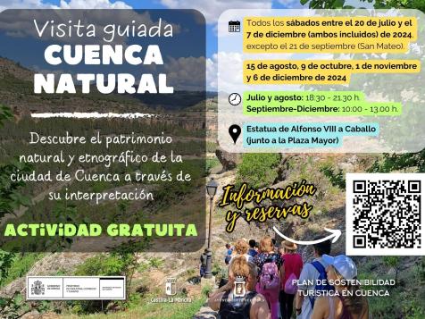 Por ello, el Ayuntamiento de Cuenca, a través de su Plan de Sostenibilidad Turística, promueve la Visita guiada “Cuenca NATURAL”, con el fin de dinamizar la oferta turística de la ciudad invitando a los visitantes a descubrir el valioso patrimonio natural y etnográfico que la rodea a través de su interpretación.