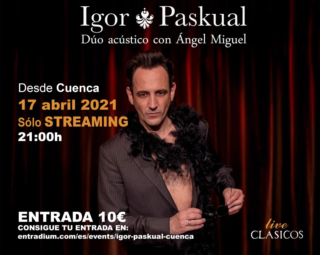 Igor Paskual el guitarrista de Loquillo presenta su tercer trabajo en solitario "La pasión según Igor Paskual", un canto a la vida nacido de la muerte de una amiga.Un concierto acústico en el que estará acompañado por Ángel Miguel que tocará guitarra acústica, mandolina dobro y coros.