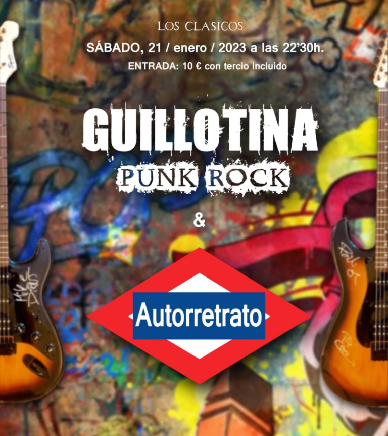 El sábado 21 de enero a las 22:30 horas en el pub Los Clásicos tocarán los vallekanos Guillotina y los conquenses Autorretrato.